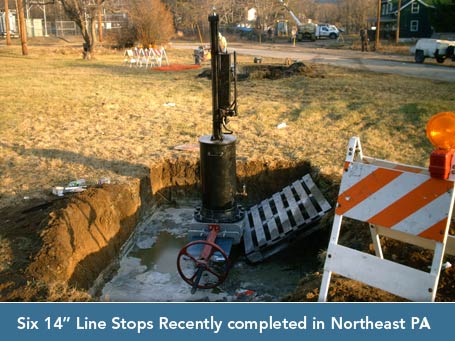 SBI Tapping's expert line stopping techniques bypass and isolate specific sections of your distribution system for repairs and or replacement of valves, pipe and hydrants. Flow stoppage can be accomplished very quickly and without main shutdowns or even interruption of service.