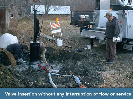 SBI Tapping’s valve insertion methods allow us to insert a gate valve directly into an existing water or waste water main while the existing pipeline is under working pressure, without any interruption of flow or service. We can work with 4" to 12" sizes on PVC IPS, C900, Steel, Cast iron, AC and Ductile.
